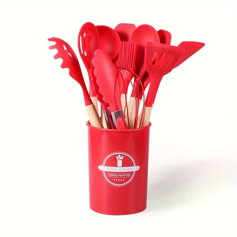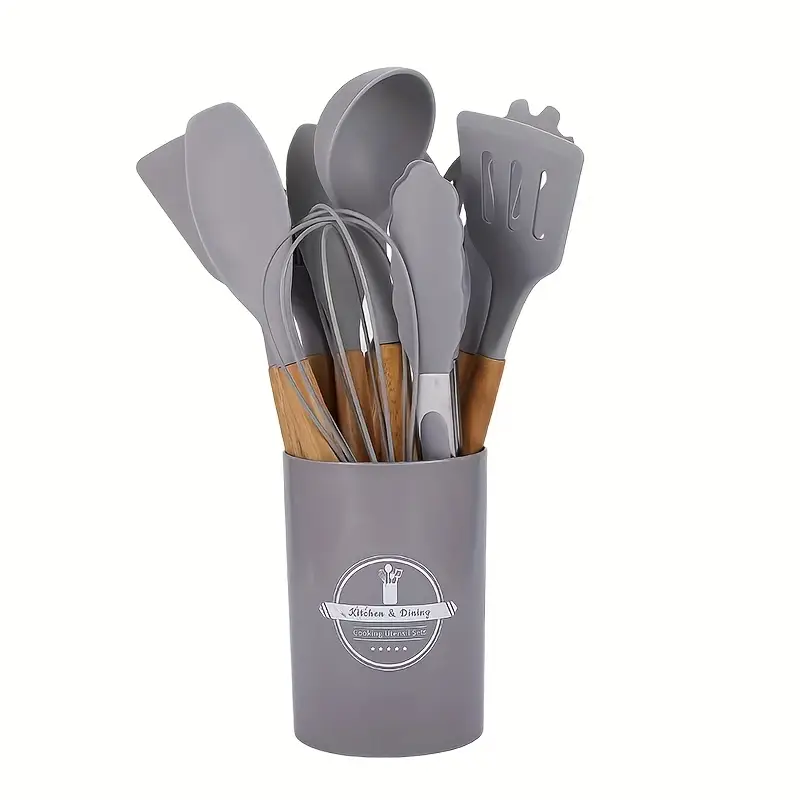 12pcs, Non-Stick Silicone Kitchen Utensil Set with Wooden Handles
